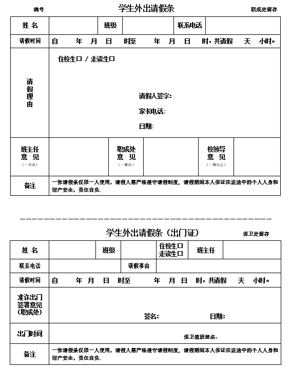 学生外出请假条