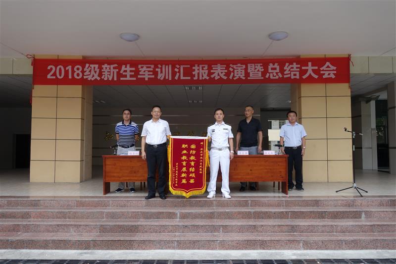 党委书记、校长吴雪恩向迎江区人武部赠送了“国防教育结硕果,职业教育展新篇”的锦旗,感谢迎江区人武部支持地方教育事业,塑造了我校新生军人气质,提高了我校师生国防意识。迎江区人武部潘政委代表人武部接受了锦旗。