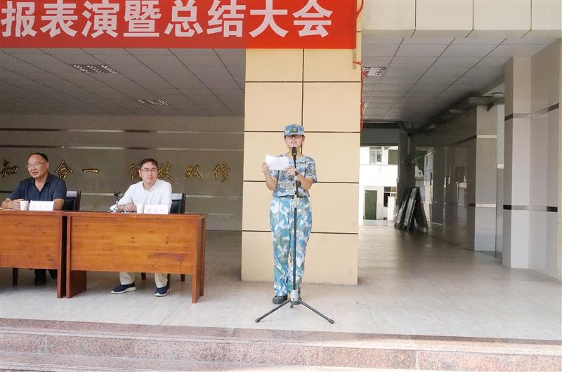 周校长作总结性发言,他代表学校向圆满完成军训任务的教官们表示衷心的感谢和崇高的敬意,向为军训辛勤工作的老师和参训的全体同学表示亲切的慰问,向取得优异成绩、获得“军训标兵”的个人表示热烈的祝贺。周校长希望同学们能够巩固军训成果,将军训中养成的吃苦耐劳精神和严明的组织纪律观念保持下来,融入到今后的学习生活中去,不断充实自己、完善自己、调整自己、超越自己,实现人生的新跨越。