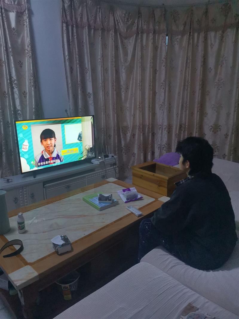 根据安徽省教育厅文件精神,校职成处第一时间通知各班班主任,随后各班班主任通过QQ群、微信群等方式通知学生3月30日下午5点57分至6点30分,在家进行直播收看或节目回看。同学们一个个坐在电视机前认真观看,学习如何保护自己。