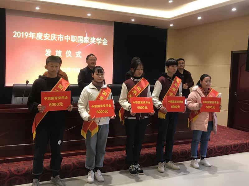 12月19日下午,我校薛涵同学参与安庆市2019年中职国家奖学金发放仪式。市教体局副局长王良宜、安庆工业学校校长孙慷出席会议并向受获奖学生代表发放奖学金。会议由市教体局财务科负责人主持。各相关学校资助部门人员,部分学生代表100余人参加仪式。