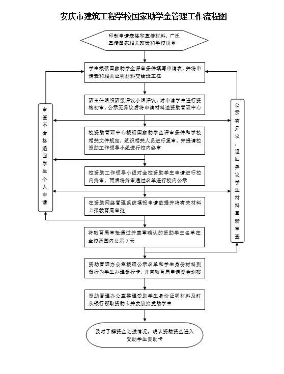 安庆市建筑工程学校国家助学金管理工作流程图