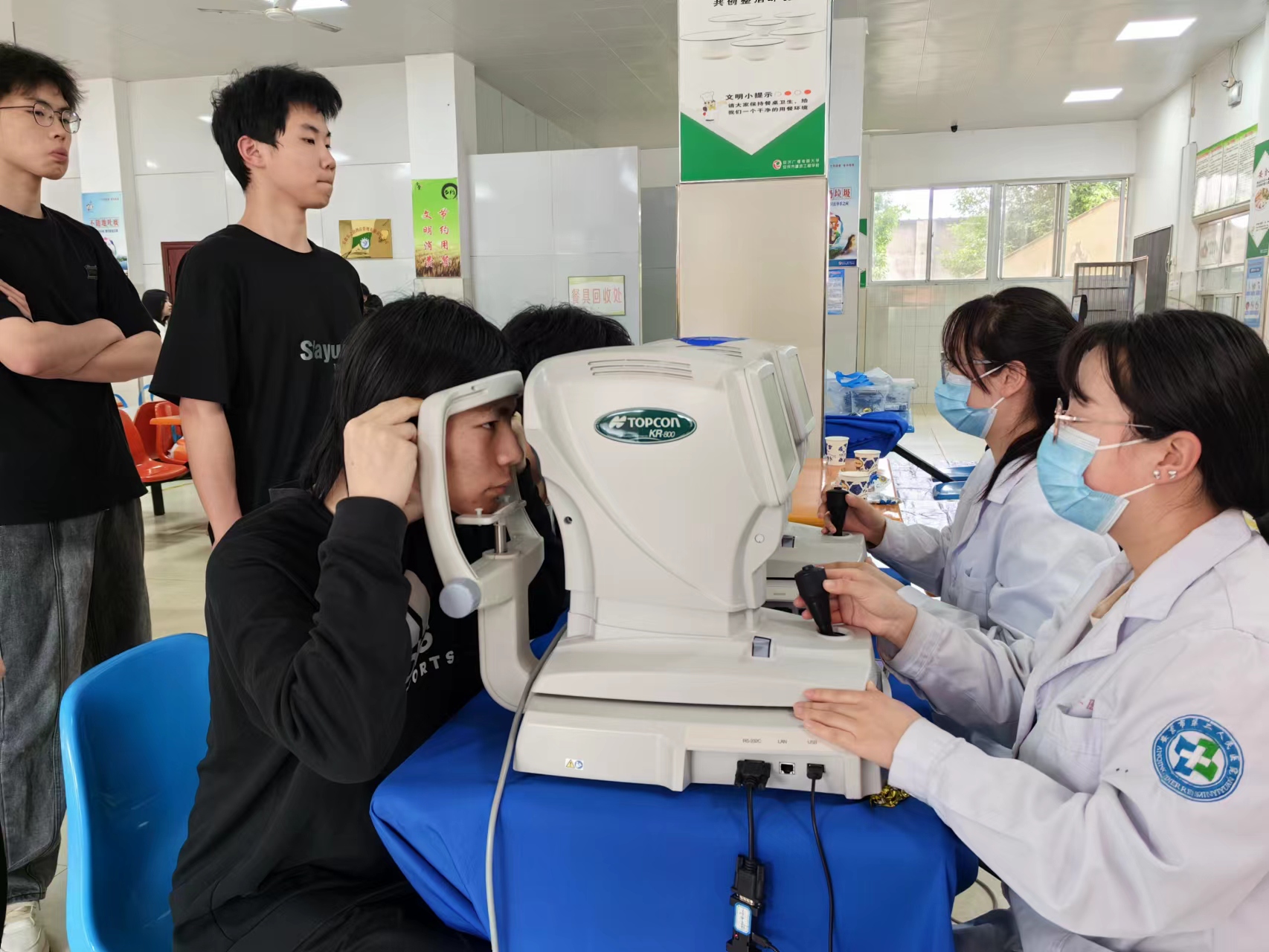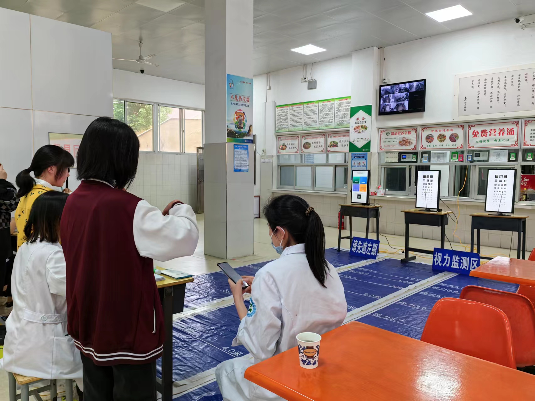 眼科医生对学生视力情况进行详细检测,并普及相关护眼知识,为学生建立视力档案,对检查结果作了详细记录,倡议同学们认真做好眼睛保健操,增加户外活动和锻炼,控制电子产品使用。