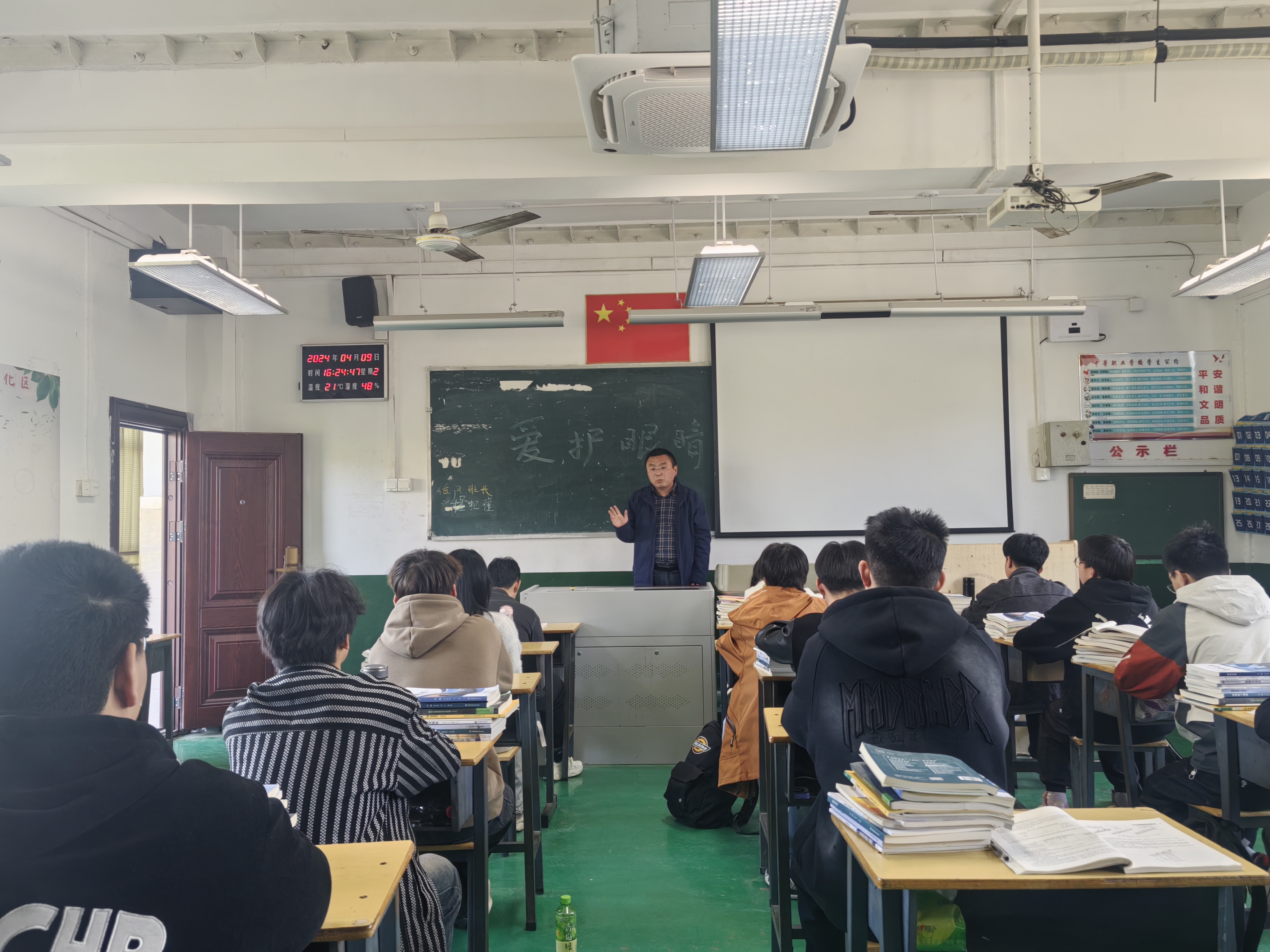 学校利用LED大屏幕、家长微信群、黑板报、主题班会等形式宣传科学用眼、预防近视等眼保健知识,培养学生爱眼、护眼意识,养成正确的读写姿势和用眼卫生习惯。号召全体任课老师将培养学生良好用眼卫生习惯贯穿于整个课堂教学,随时纠正学生不良读书写字姿势,课间督促学生到室外活动或远眺。要求学生不躺在床上看书,不在暗弱或强光下看书、写字。