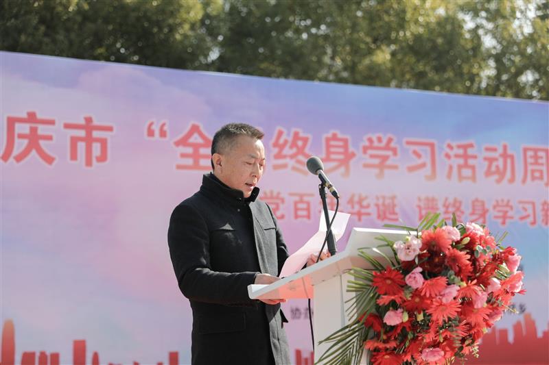 安庆皖江中等专业学校办公室常春主任代表市民倡议发言《2021年安徽省“终身学习品牌”:望江挑花保护与传承》,进一步展示了我市全民终身学习成果。