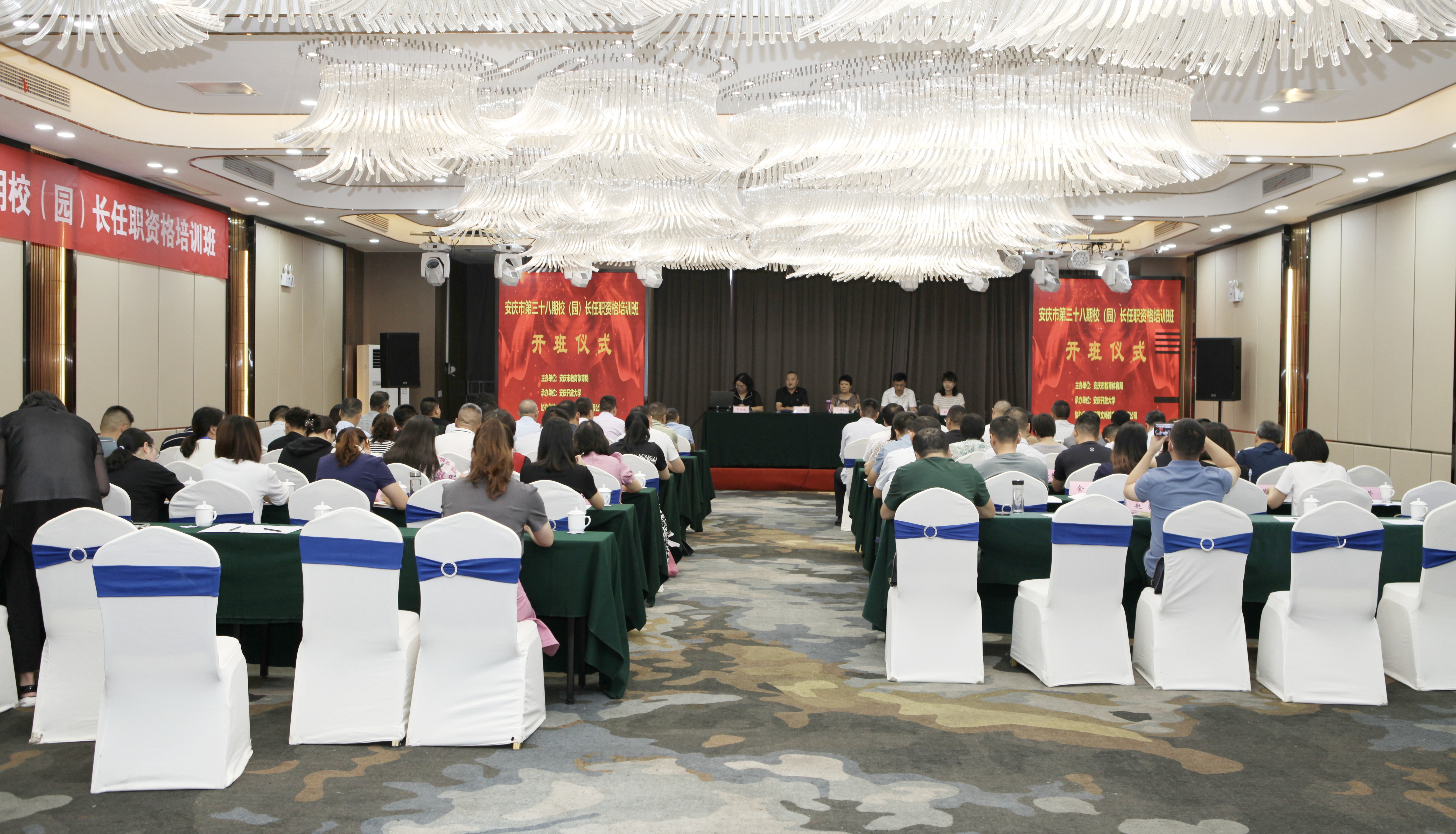 8月11日,安庆市第三十八期中小学校(园)长任职资格培训班在潜山市隆重开班。市教体局相关领导、安庆开放大学党委委员、副校长王付清以及相关部门人员出席开班仪式,60多位中小学校(园)长参加培训。
