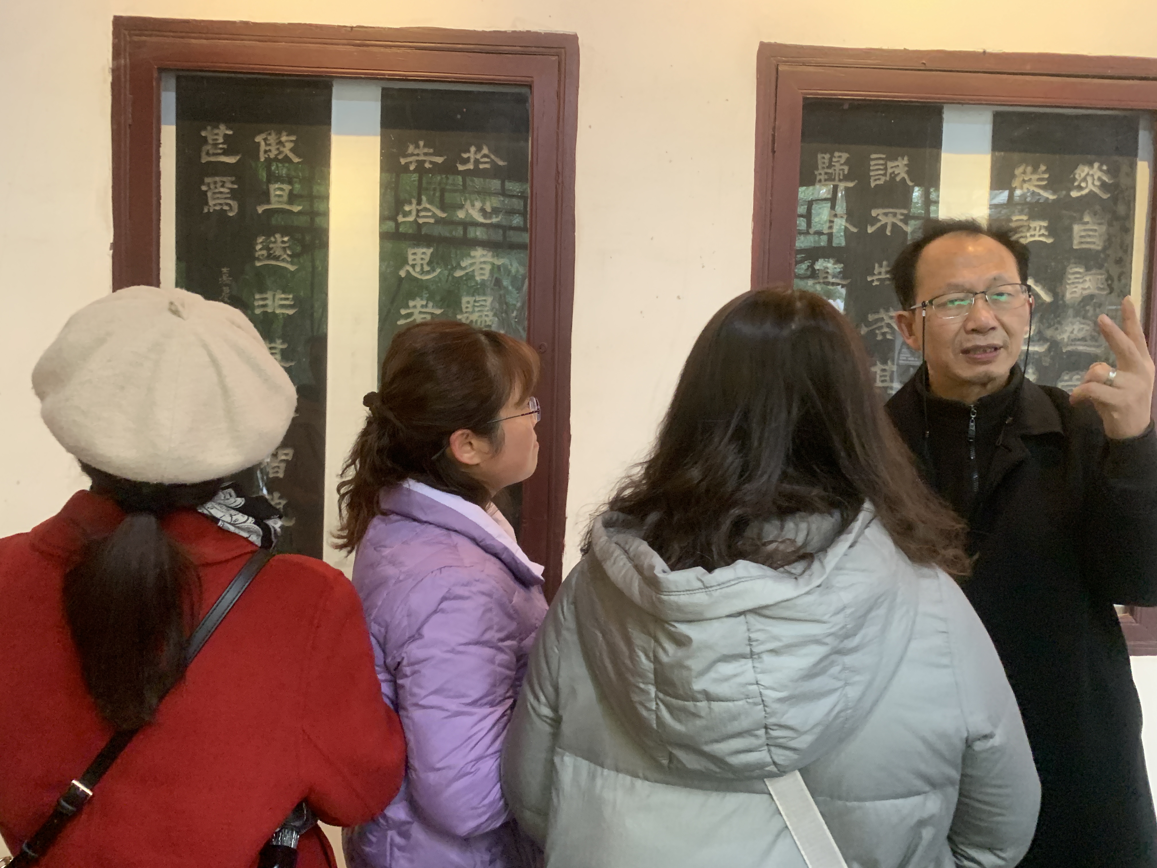为拓展教学空间,培养学员书法审美能力和提高书法技能, 12月4日上午,安庆市老年开放大学书法班学员们在授课老师王柏翠教授带领下,赴位于菱湖公园内的邓石如碑馆开展研学活动。