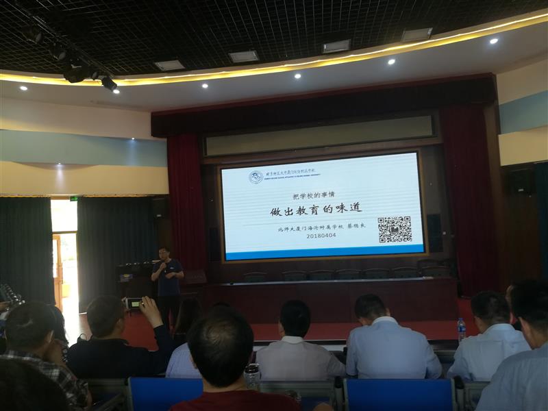 培训期间,学员们实地考察了北京师范大学厦门海沧附属学校。蔡稳良校长以《把学校的事情做出教育的味道》为题,向大家重点介绍了培育文明礼貌、身心健康、善于学习的阳光学生,培养师德高尚、公正负责、追求卓越的智慧教师,建设环境优美、设施齐全、不断创新的幸福学校的办学特色。与大家分享了以“自信、自强、惟德、惟能”的校训精神引领学校文化,以“九年影响一生”的办学理念支撑学校思想,以“九年一贯制”构建课程体系的办学经验。