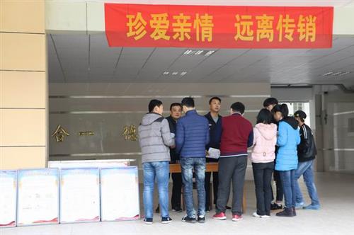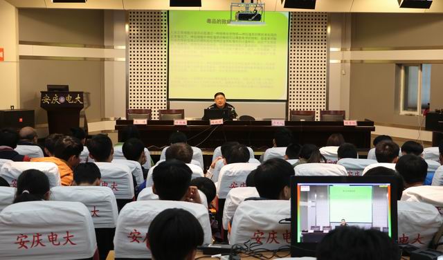 会前,迎江公安分局经侦支队在校园做了“珍爱亲情 远离传销”宣传活动。会上,华中路派出所程晓明警官为同学们介绍了防毒、防诈骗基本知识,列举了一系列发生在身边的吸食毒品“毁灭自己、祸及家庭、危害社会”的典型案例,告诫同学们一定要提高警惕,珍惜生命、远离毒品。同时,程警官通过宣讲真实的诈骗案例向师生们普及了预防网络电信诈骗的方法。