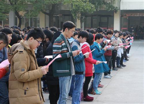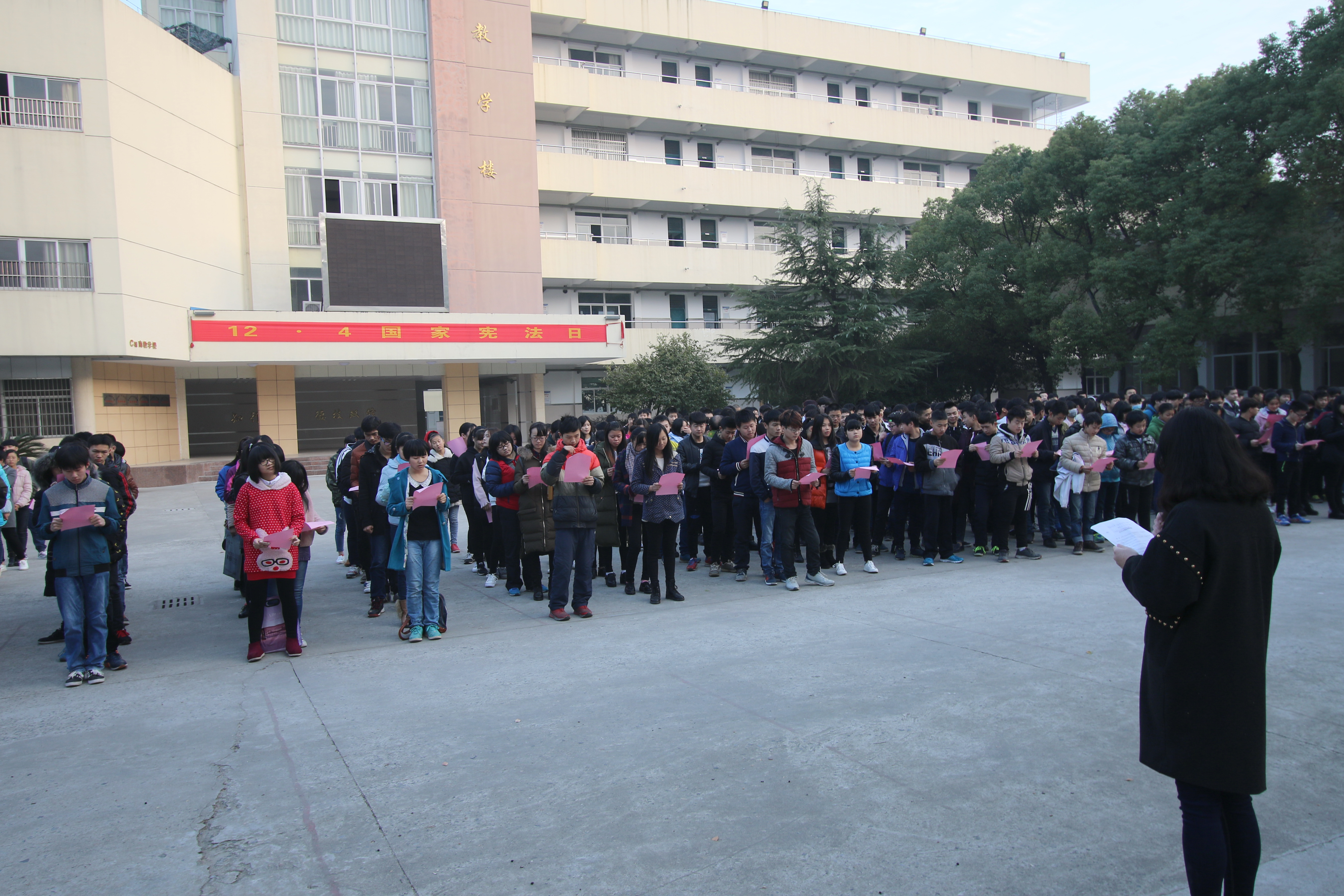 12月5日,在周一早晨升国旗仪式上, 我校组织全校学生开展了宪法晨读活动。晨读活动由学生干部领读宪法部分章节,现场全体师生跟读。
