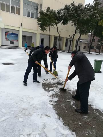 1月28日上午,我校组织应急突击队员再次开展了校园和校园周边积雪清扫和除冰活动,方便了师生、过往行人和车辆的出行。