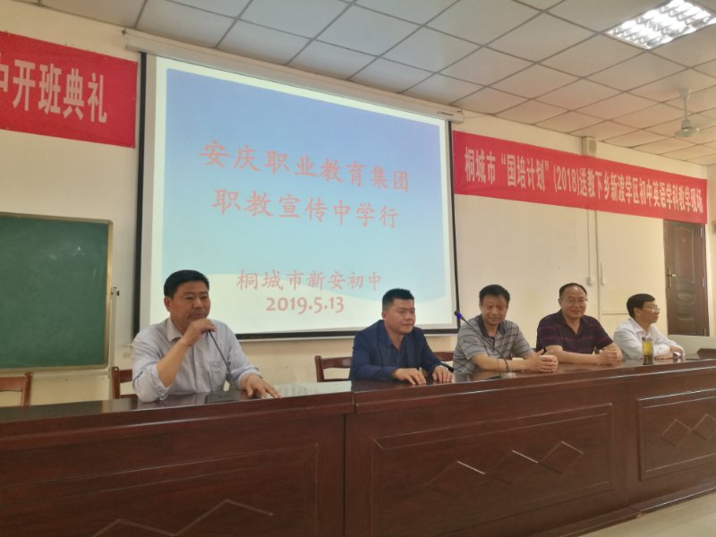 继上一周后,安庆市教体局组织的2019年职业教育宣讲团在我校副校长周光纯的带领下,于5月13日,到桐城市新安中学、双港中学进行职教宣讲我校招生就业处主任张国祥及王友星老师随队同行