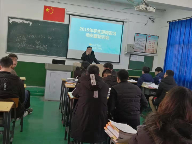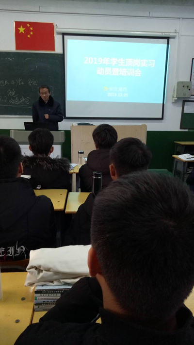 2019年12月4日下午,我校招生就业处在职成处配合下,在学校C楼301教室召开了2017级学生(毕业生)顶岗实习动员暨培训会,2017级参加顶岗实习的学生全体参加会议,招生就业处主任张国祥、职成处主任程学刚分别讲话。