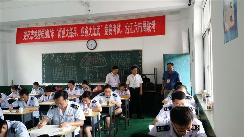 8月20日上午安庆市2017年“岗位大练兵、业务大比武”竞赛考试在我校举行。为承办好此次考试,我校领导高度重视,对本次考试作了精心组织和安排,考场开启了全程实时监控系统,监考教师尽职尽责,热情服务。由于措施到位,整个考试考风考纪严谨,考场秩序井然,确保了此次竞赛考试任务的圆满完成。