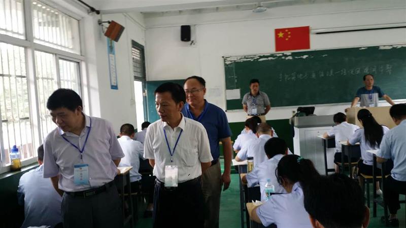 考试期间,校领导陪同市工会、市地税局领导巡视了考场。