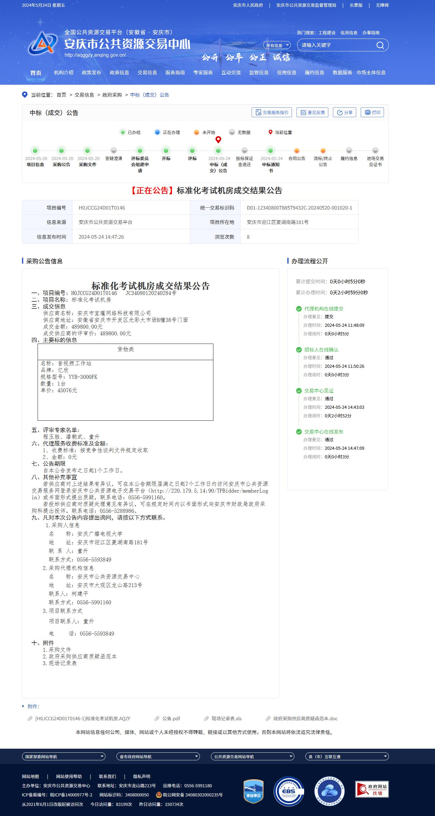 【正在公告】标准化考试机房成交结果公告