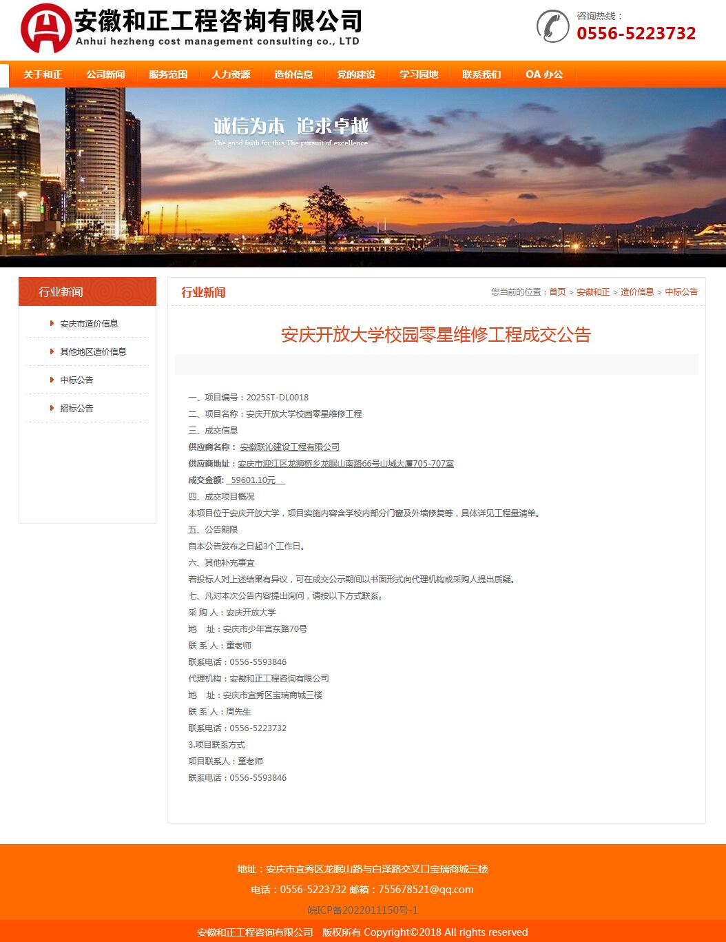 安庆开放大学校园零星维修工程成交公告