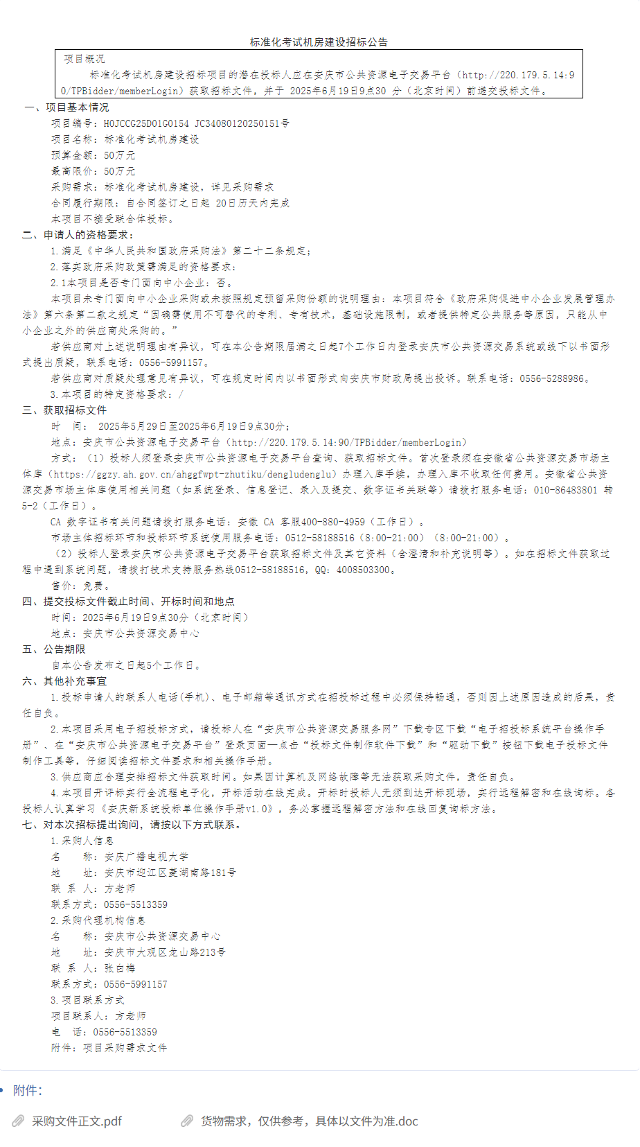 【正在公告】标准化考试机房建设招标公告【公开招标】【货物类】