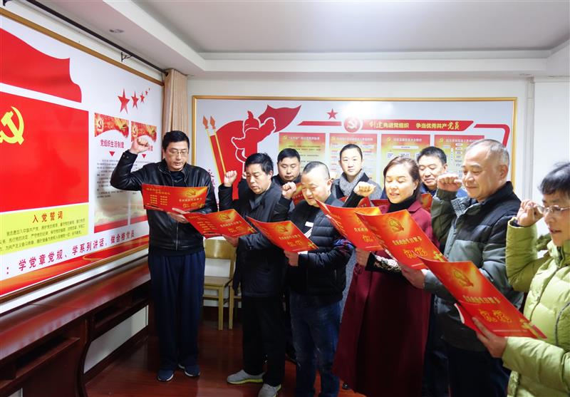 支部书记钱鹂鹂向每位党员赠送了“政治生日贺卡”,在她的带领下,支部全体党员面向党旗重温誓词,庄严宣誓,提醒每位党员不忘初心、牢记使命,要进一步增强政治意识、核心意识、大局意识和服务意识,要讲政治、重规矩、作表率,立足本职岗位创先争优,为党旗争辉。
