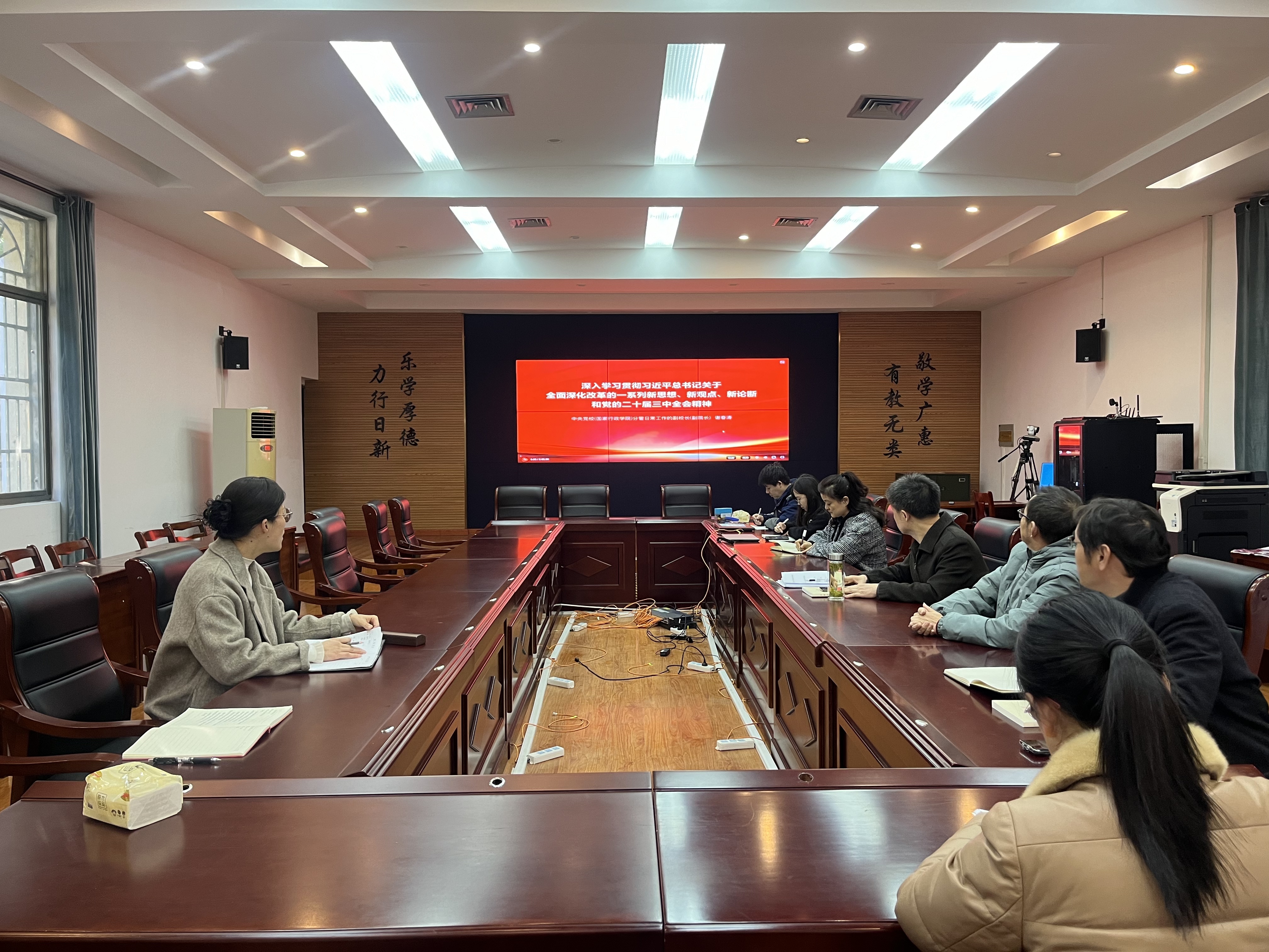 11月27日,第一支部在A104会议室召开专题学习会议,组织支部党员开展学习贯彻党的二十届三中全会精神集中培训。会议由支部书记李淑芬主持。