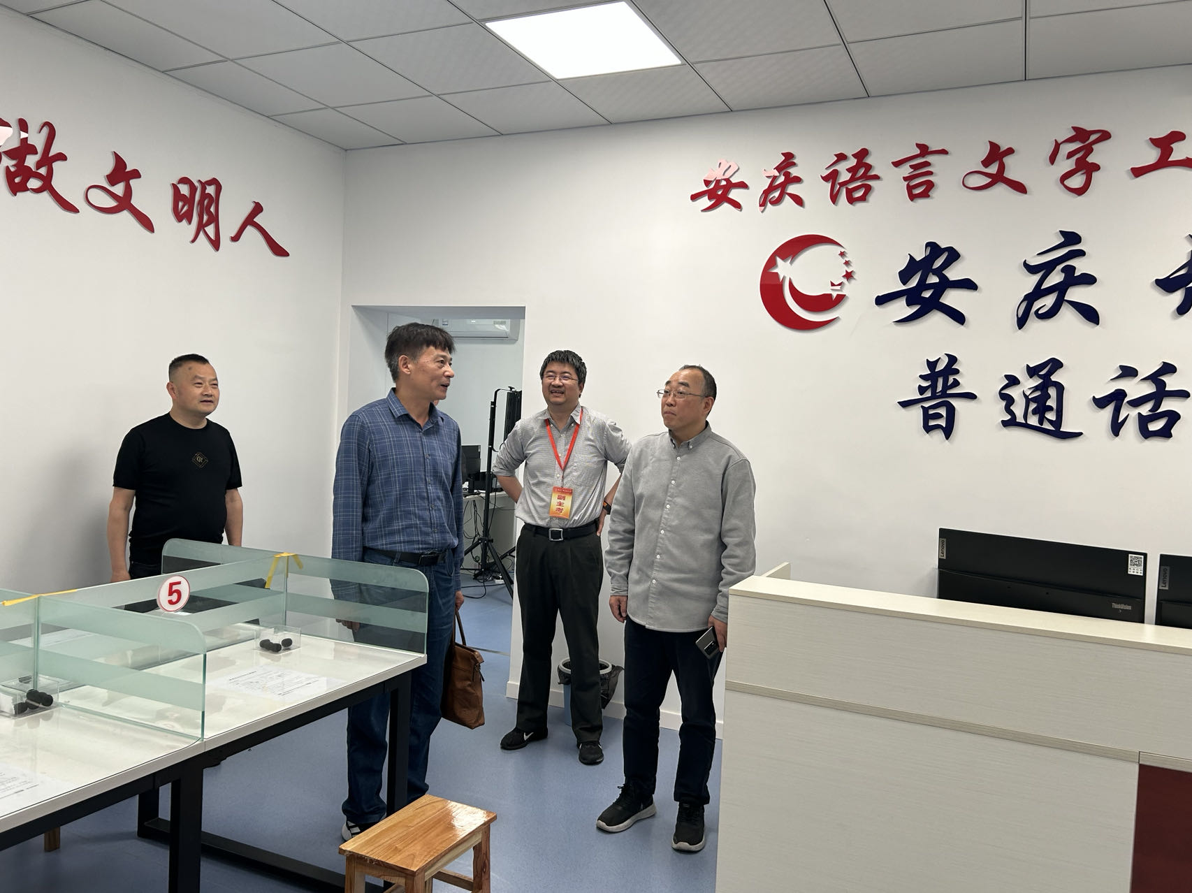 5月6日上午,安徽省普通话培训测试中心副主任单明、韩伟光老师一行到我校开展普通话水平测试站检查巡视工作。安庆市教体局语委办主任姚久大、安庆开放大学副校长、安庆市普通话水平测试站站长王佩捷和安庆开放大学副校长王付清随同陪行。