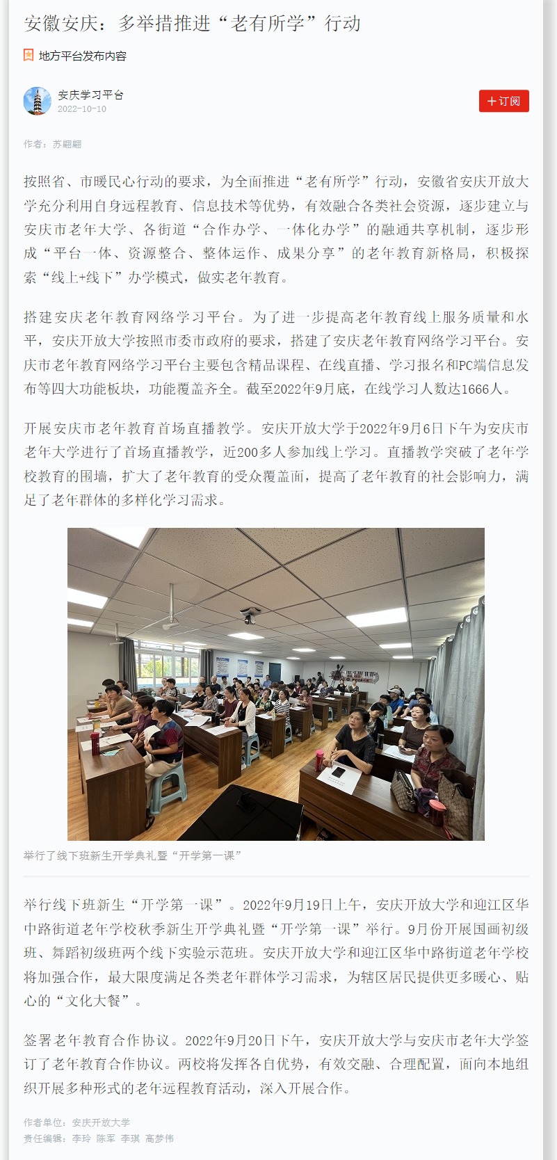 学习强国:安徽安庆:多举措推进“老有所学”行动