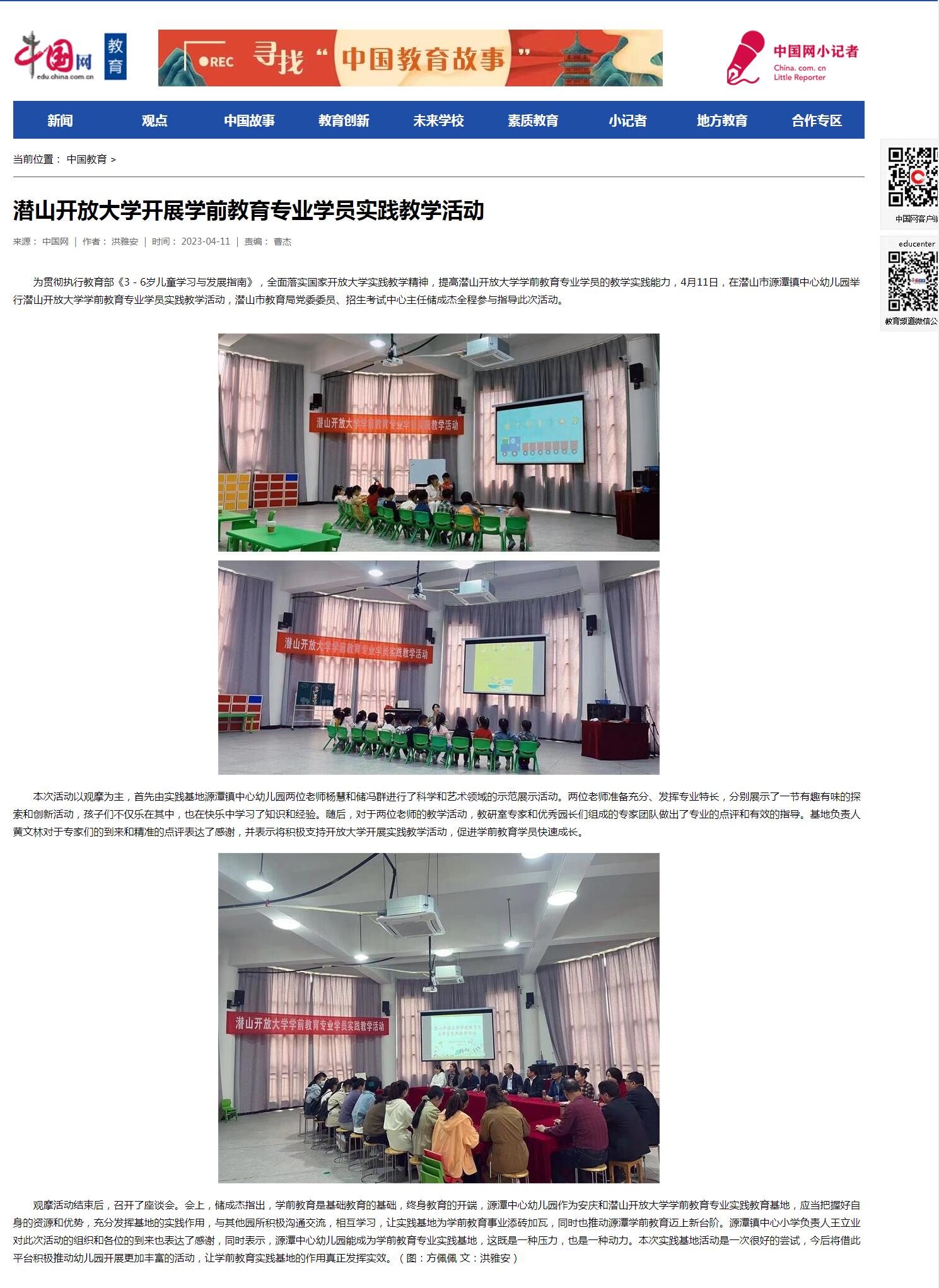 中国网:潜山开放大学开展学前教育专业学员实践教学活动