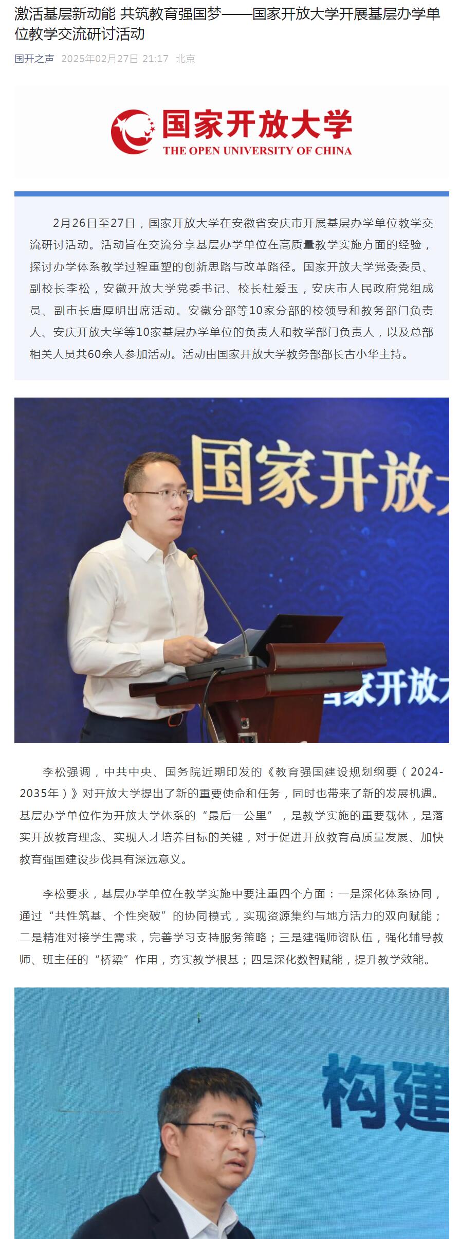 国开之声:激活基层新动能 共筑教育强国梦——国家开放大学开展基层办学单位教学交流研讨活动