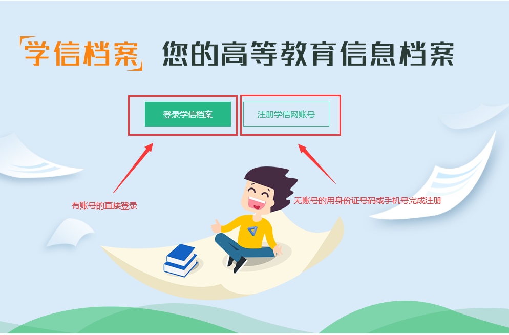 第二步:有账号的点击左边直接登录,无账号的点击右边用身份证号码或手机号进行注册(注册时长约2分钟)