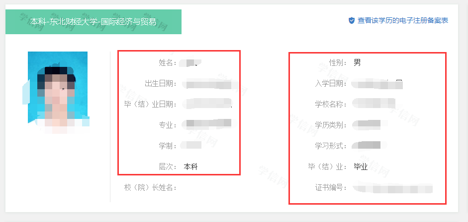 第五步:可以查询到自己的学历了,如果发现异常信息,请及时跟辅导员联系。